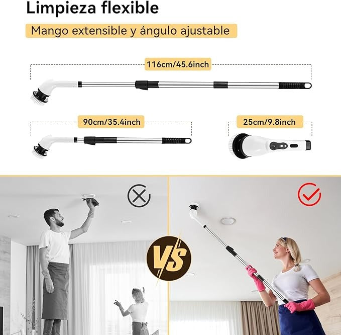 Con el Cepillo Eléctrico Giratorio 9 en 1 Plus, dile adiós al esfuerzo y al dolor. Limpia más rápido, con menos esfuerzo, y ¡en cualquier rincón de tu casa! 🧽⚡