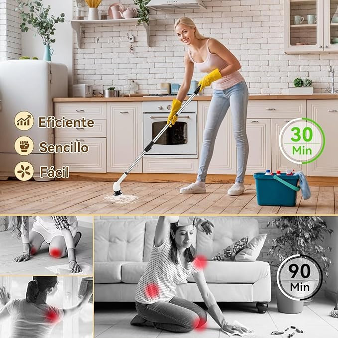 🧼 ¡El 82% de los personas terminan con dolor de espalda o rodillas por limpiar con cepillos tradicionales!